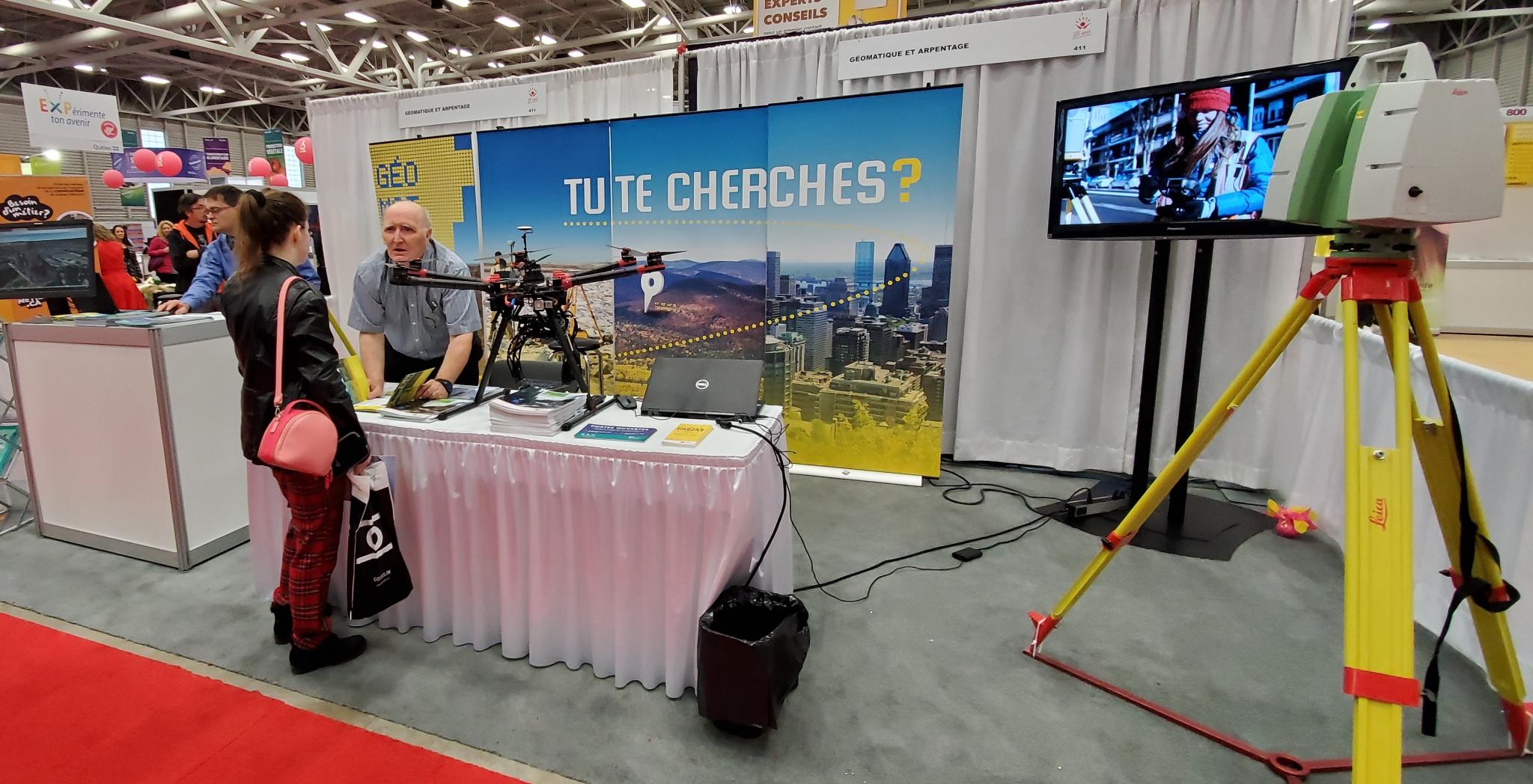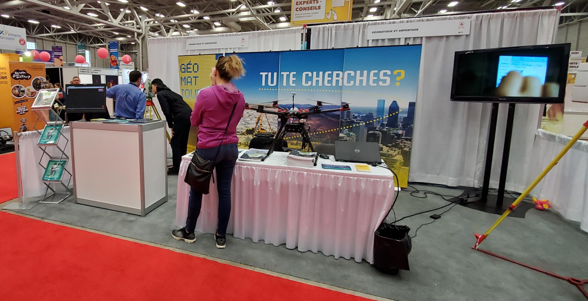 Du 24 au 26 octobre 2019 avait lieu le salon carrière formation de Québec au Centre des foires. Fidèle à ses habitudes, l’ACSG Section Champlain était partenaire financièrement de l’événement en collaboration avec le Cégep Limoilou, l’Université Laval et l’Ordre des Arpenteurs Géomètres du Québec. Le salon est l’occasion de promovoir la profession du domaine géospatial et de permettre aux jeunes et moins jeunes de poser leurs questions directement aux personnes présentes que ce soit au niveau des études collégiales ou universitaires ou sur le marché du travail.